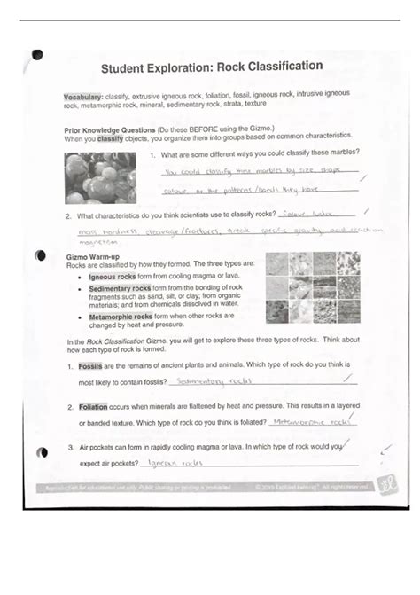 Read Online Student Exploration Rock Classification Answers Hardcover